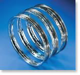 The chrome rim is a budget rim, produced predominantly for the high competitive original equipment replacement market. Although perfectly adequate for the replacement market it may not offer the quality required by the professional restorer. The Radaelli stainless steel is polished to give the appearance of chrome, yet has the added strength and corrosion resistance of stainless steel. This makes it virtually maintenance free and so perfect for those enthusiasts who would rather spend their time riding rather than polishing their bikes. |
