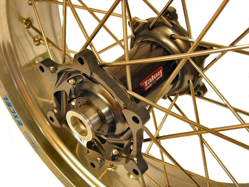 Especially for all you weight freaks out there, Talon has developed an ultra light hub with carbon. Available in the same colours as the standard hubs (silver, gold, black, red, blue, titanium, magnesium…). A complete set (front and rear) saves you about 950 grams! |